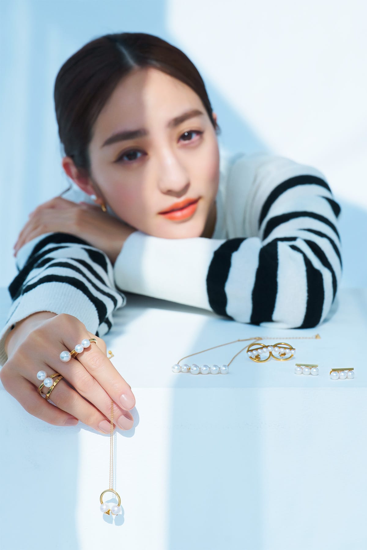 きちんと上質に見えて、アレンジ次第でジャケットスタイルのハズしに、カジュアルな普段着を格上げしてくれる万能さも魅力。【モデル】ピアス〈18KYG×あこや真珠〉¥389,400リング人差し指〈18KYG×あこや真珠〉¥374,000薬指[指先から]〈18KYG〉¥116,600〈18KYG×あこや真珠〉¥242,000手に持っているネックレス〈18KYG×あこや真珠〉¥338,800(すべてTASAKI)ニット¥14,300(ザポーズ/ウィムガゼット ルミネ新宿店)【テーブルに置いた物】[右から]ピアス〈18KYG×あこや真珠〉¥385,000ピアス〈18KYG×あこや真珠〉¥556,600ネックレス〈18KYG×あこや真珠〉¥598,400(すべてTASAKI)