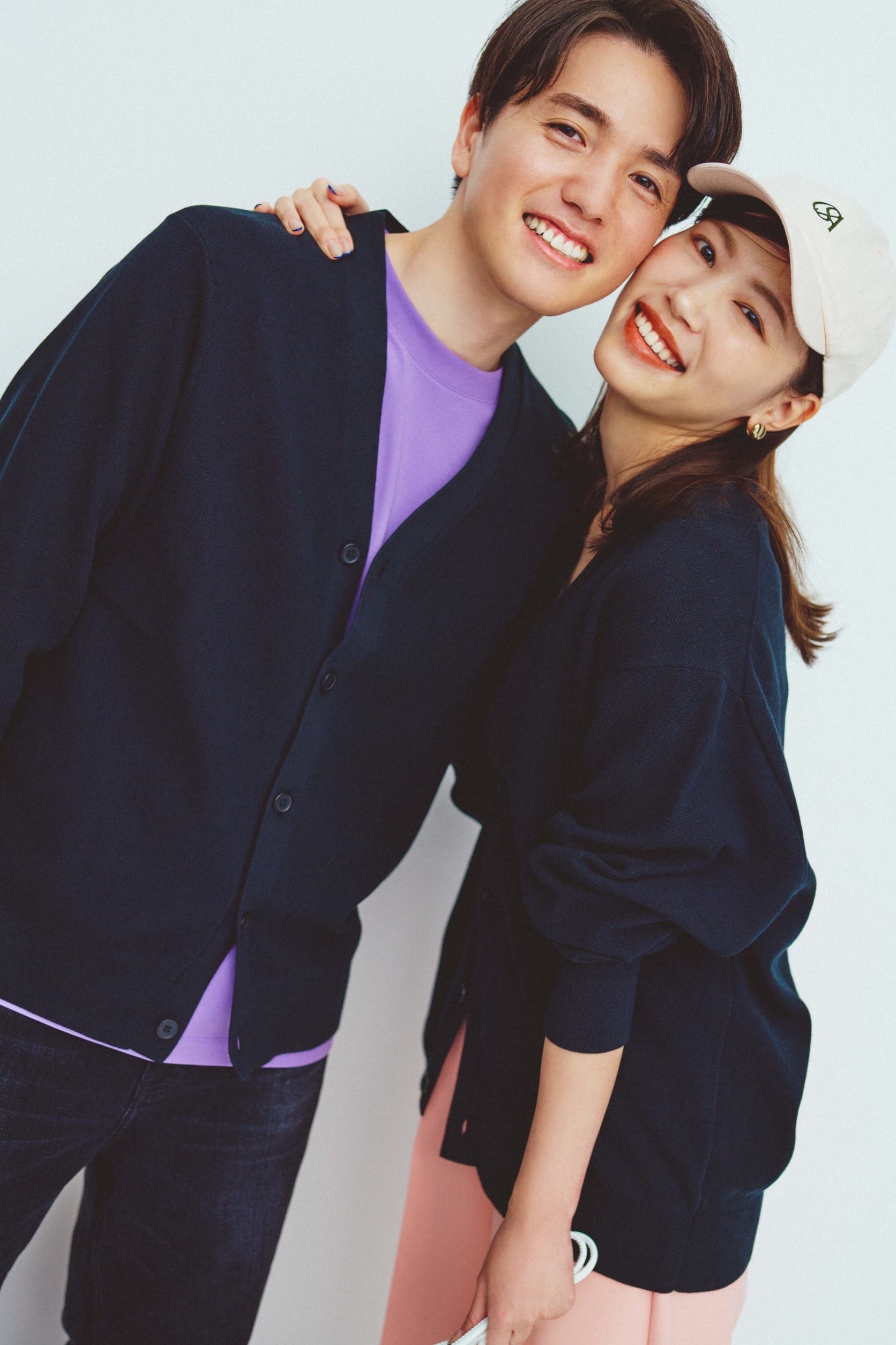 最近、カップルでひとつの服や小物を着回す「シェア服」が流行っているのをご存知ですか?挑戦してみたいけど、上手にコーデに落とし込めるか不安…という方も多いはず。そこで、手頃な価格で手に入る「ユニクロ」のメンズ&ユニセックス服を使った着こなし術を、人気スタイリストの近藤和貴子さんが伝授!今回は「ウォッシャブルミラノリブVネックカーディガン」を、実際に読者カップルに着用してもらいました。