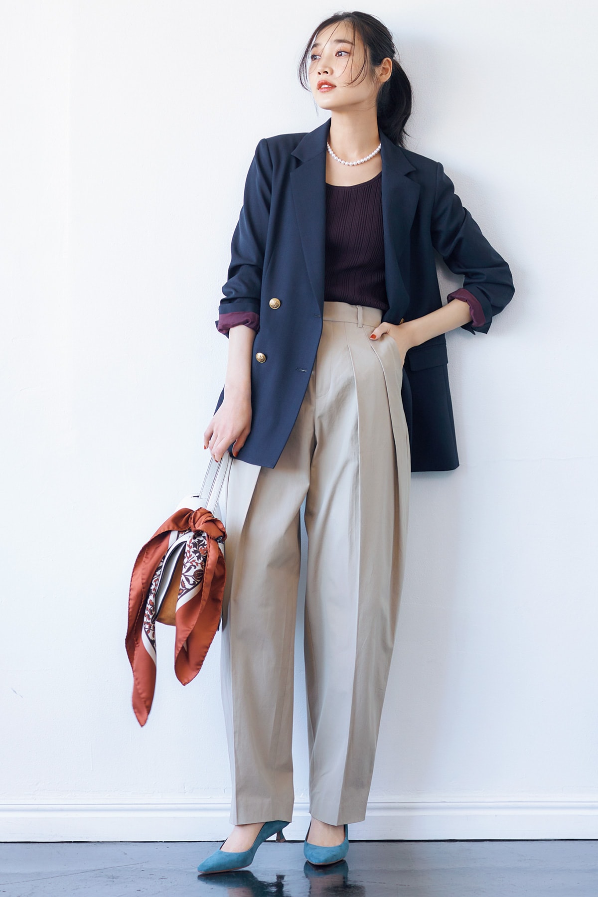 流行関係なくオンオフ出番が多いのが、紺のダブル。オフィスではカッコよく、オフはデニムでカジュアルに…どんなシーンにも寄り添うベーシック番長!