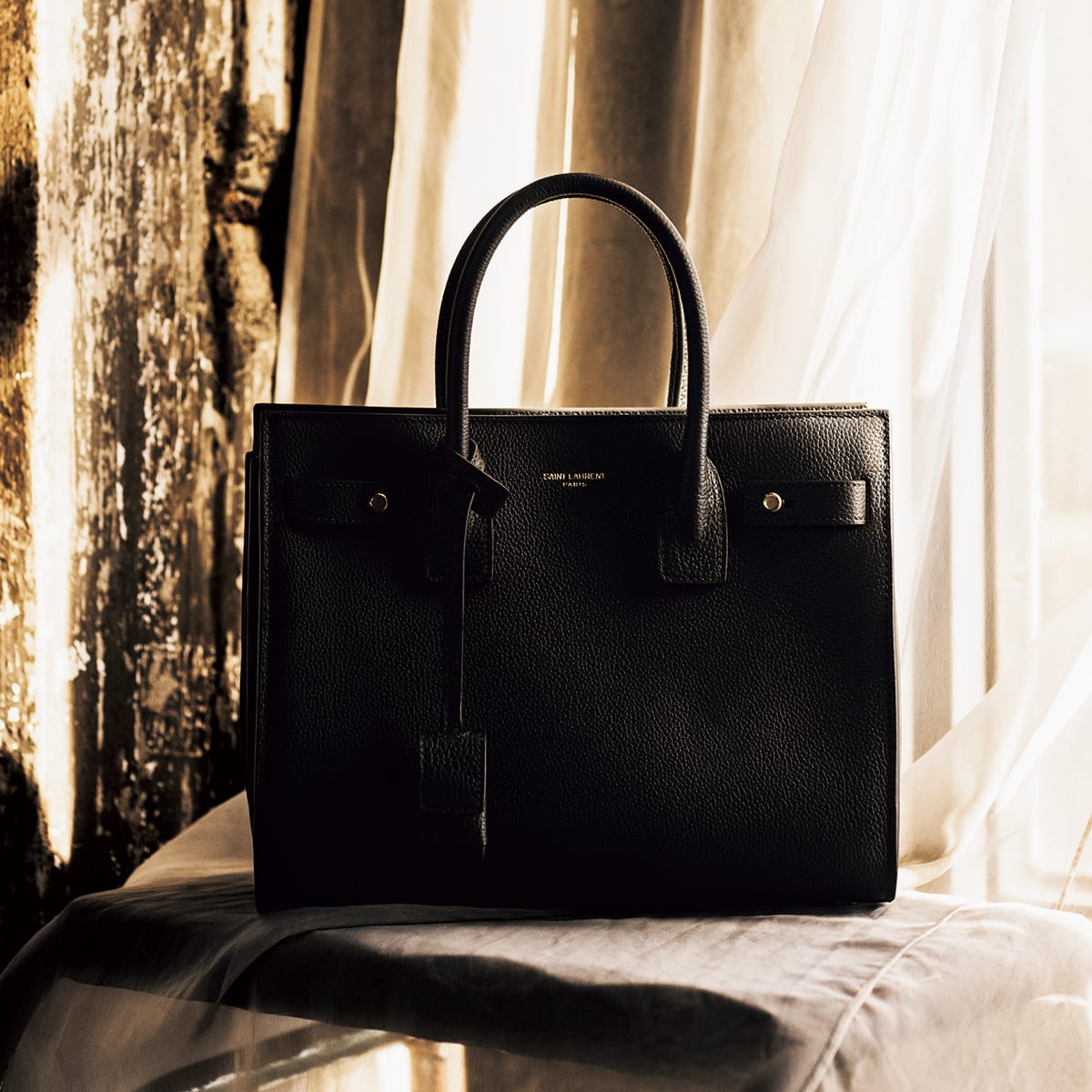 2013年に誕生し、ブランドのシグネチャーアイテムのひとつでもある「SAC DE JOUR(サック・ド・ジュール)」。フランス語で「デイバッグ」を意味する通り、仕事シーンでの使い勝手も追求して設計。洋服の仕立てと同じ技法を用いたサイドのアコーディオンプリーツや100以上のパーツを組み立てた高度な職人技で、サンローランの歴史と伝統を感じられる名作。