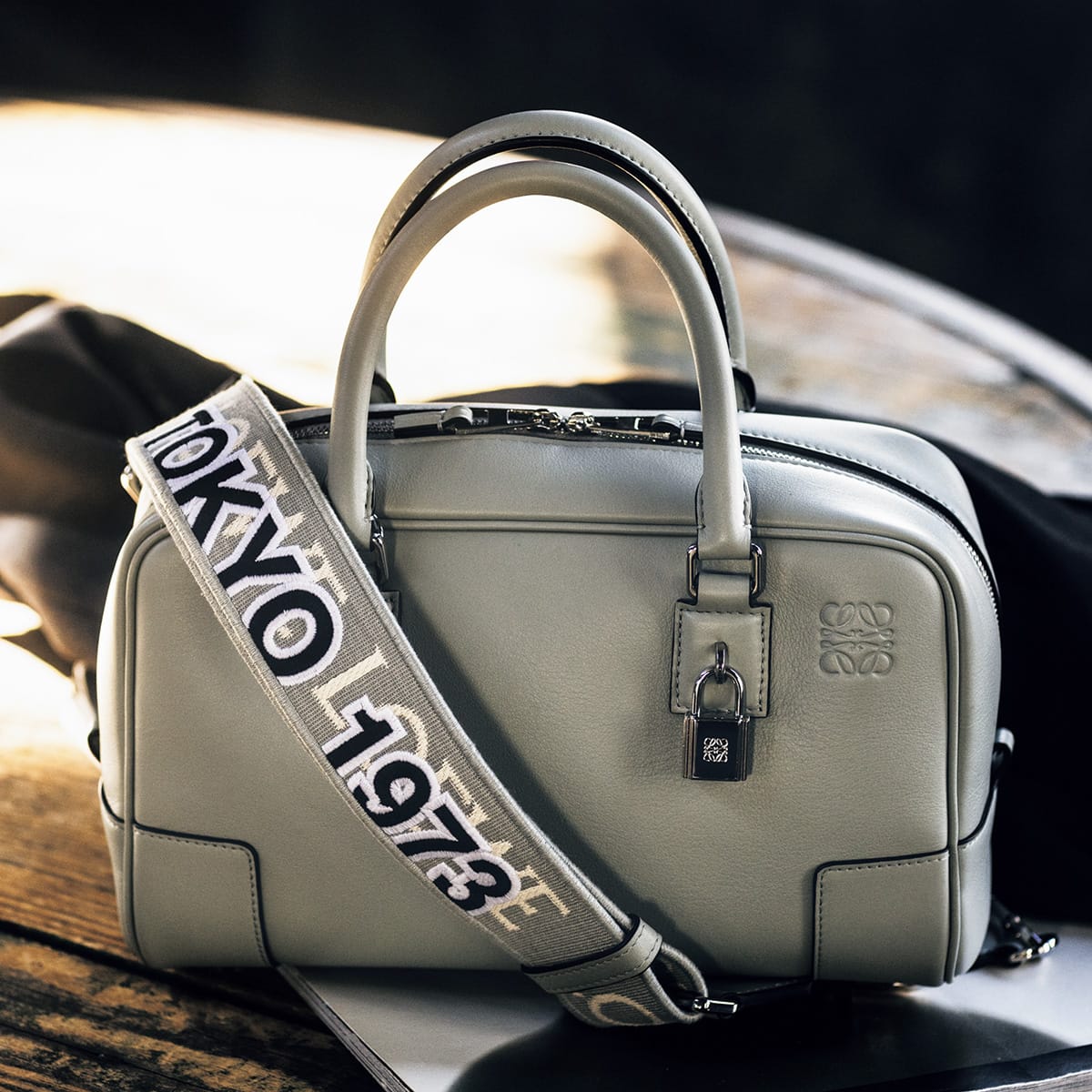 男女平等や女性の独立が進み始めていた1975年にデザインされた「アマソナ」は、自立した女性のために、1日の勤務に必要なすべてを収納できる容量と汎用性を両立。今シーズンは、ロエベ日本展開50周年を記念したモデルが登場。日本上陸元年に因んだ「TOKYO 1973」とロエベの創業年を表す「MADRID 1846」を織り込んだジャカードストラップを採用。