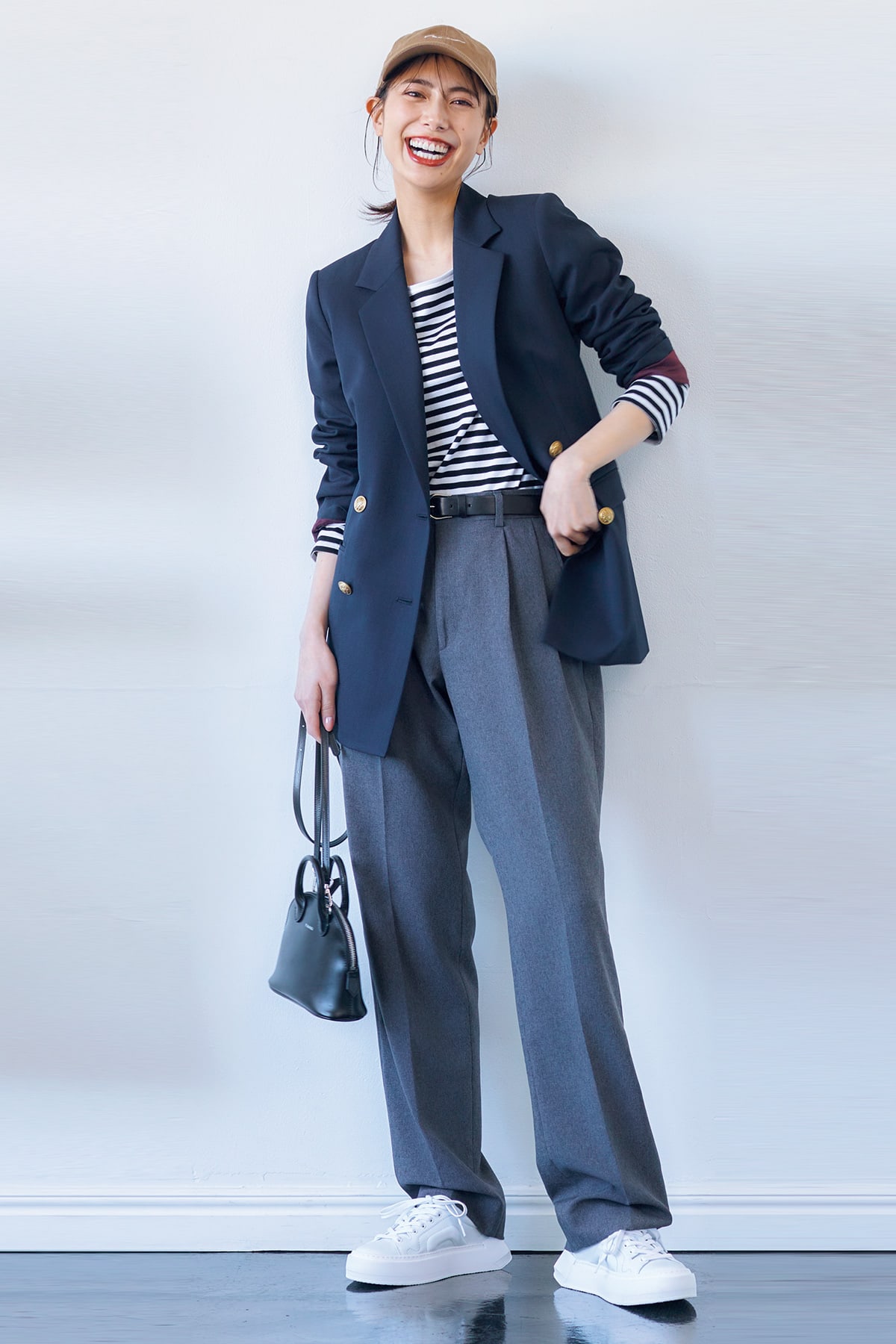 ジャケパンコーデもボーダーと小物で休日っぽく変身できちゃう