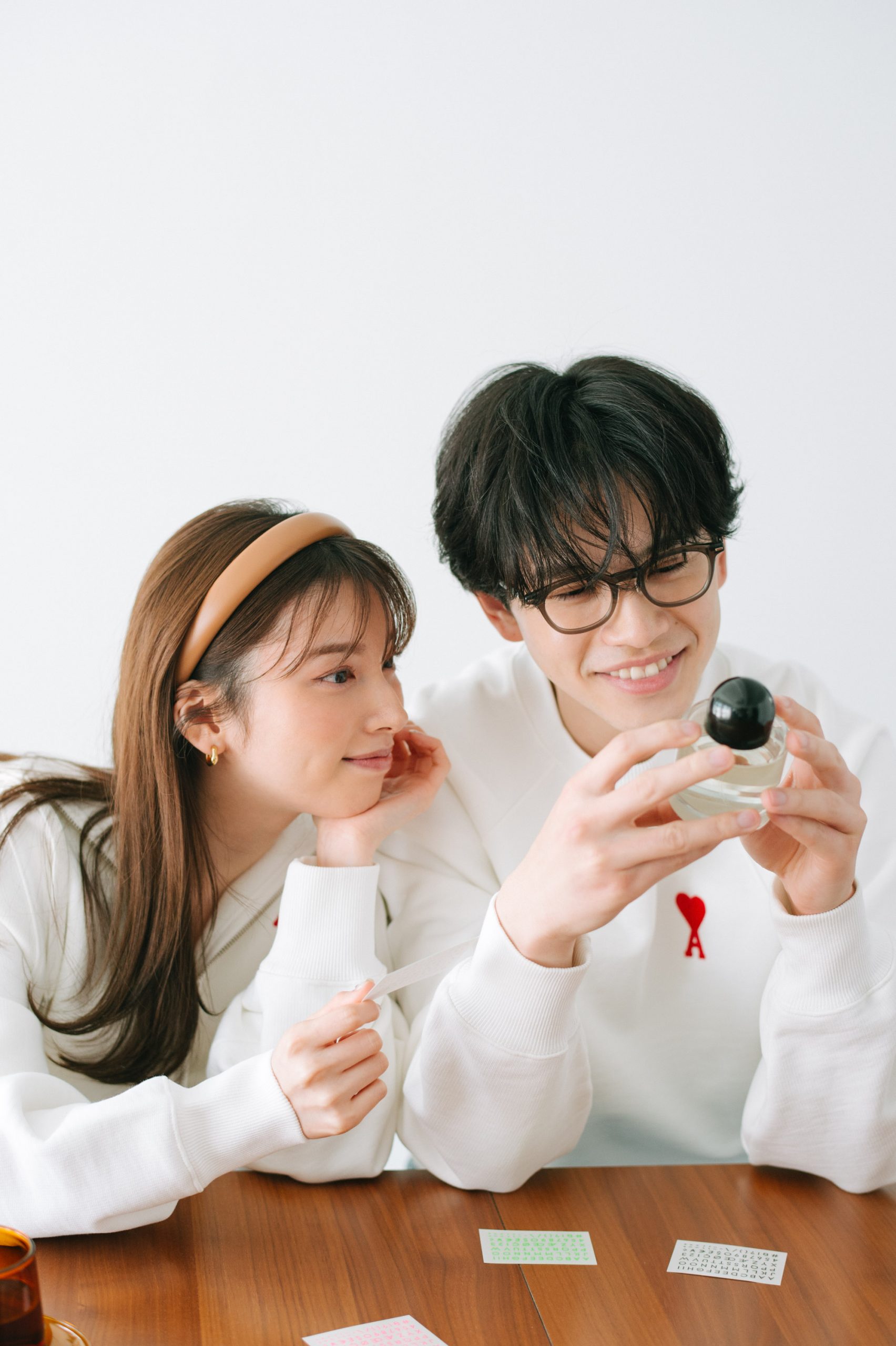 メゾンブランド出身のデザイナーが手がけるブランド。シンプルで洗練されていながらも、ハートモチーフのロゴがどこかユーモアを感じさせます。ふたりで同時に着るなら形の違うのものを選んで、ボトムスは素材だけを合わせるルックがスタイリストのイチ推し。