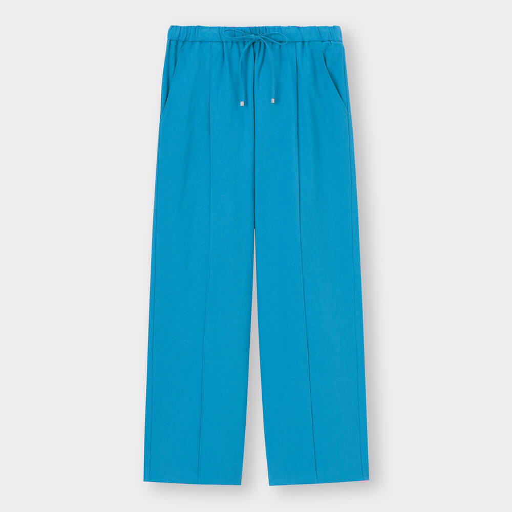 夏にぴったりの清涼感あふれるリネンブレンド素材のプルオンパンツ。タックでウエスト周りはすっきりと、前身頃にはセンターピンタックを施しており、縦のラインを強調することで脚長効果も抜群です。はき込み位置を調整できるウエスト寸法にしているので、旬なローウエストでのはき込みも簡単に叶うはず。