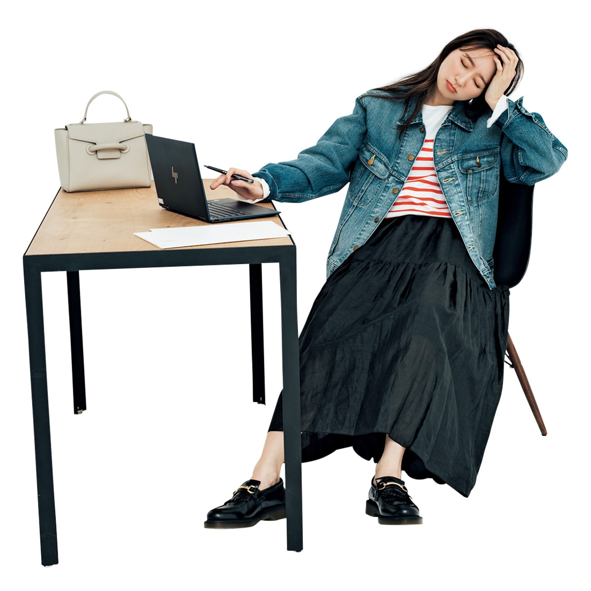 仕事で文章を書くのはほぼ初めてで、すごく難しい。定型文のように書くことはできるけど、この文章ならAIにだって楽勝で書けそう。AIに仕事を奪われたことがトラウマになってるのかなぁ。バッグ¥52,800(ヴァジック/ヴァジックジャパン)ローファー¥27,500(ドクターマーチン/ドクターマーチン・エアウエア ジャパン)イヤリング¥3,150(アビステ)