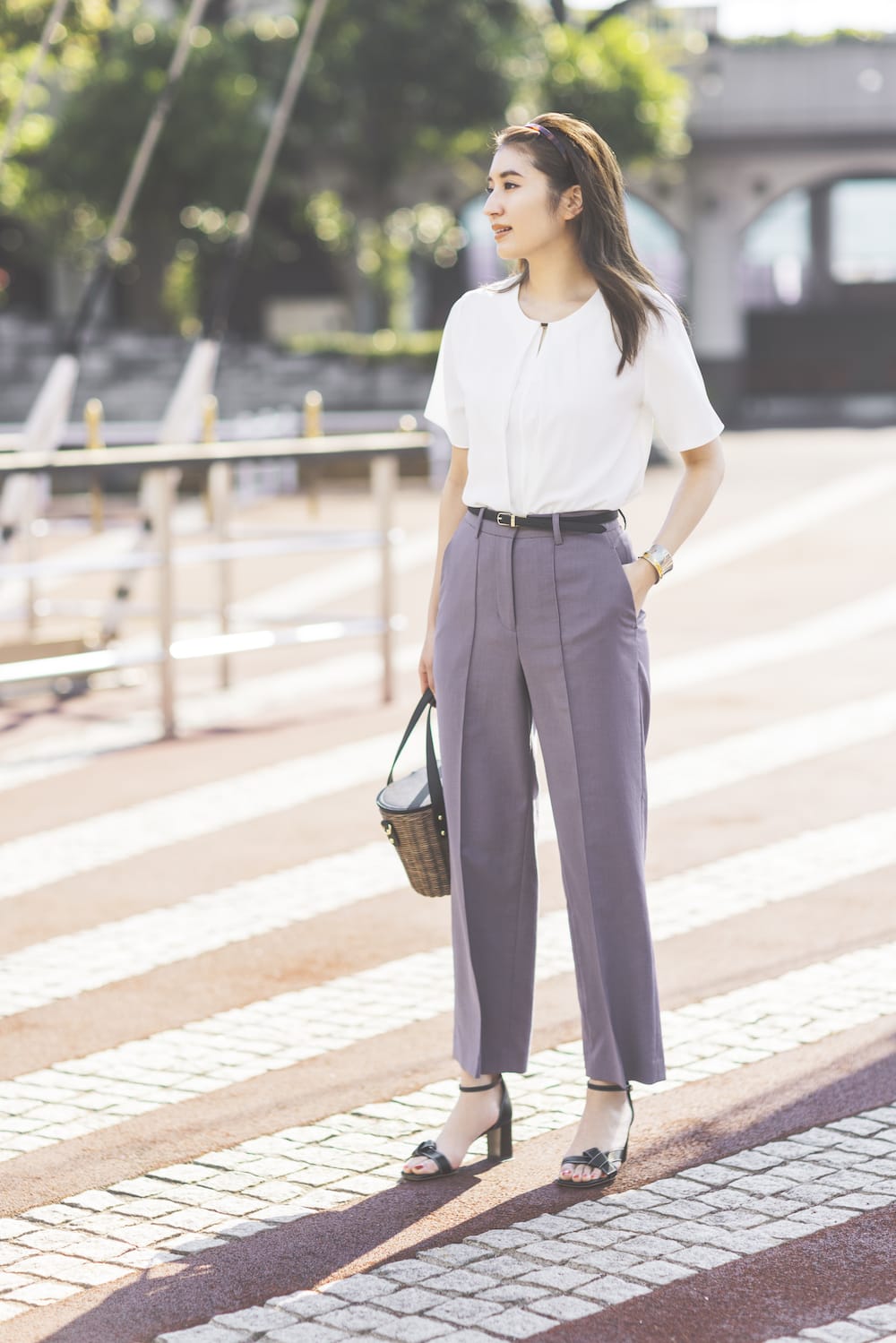 毎シーズン登場するたびに人気の「ORIHICA フラミンゴPANTS®︎」にワイドパンツが登場。高いウエスト位置やフロントピンタック、そして計算されたシルエットで脚を長くまっすぐ美しく見せてくれます。ブラウスはパンツにインもアウトも可能な絶妙な着丈。パンツのシルエットもキレイだから、シンプルなワンツースタイルも自信を持って挑戦できる! パンツ¥7,590 ※5月11日納品予定 ブラウス¥4,290ベルト¥4,290(すべてオリヒカ/オリヒカ池袋東口店)バッグ¥26,950〈ダイアナ〉サンダル¥22,000〈タラントン by ダイアナ〉(ともにダイアナ 銀座本店)カチューシャ¥5,390(ヤネケ/ZUTTOHOLIC)バングル¥19,800(イン ムード/フォーティーン ショールーム)