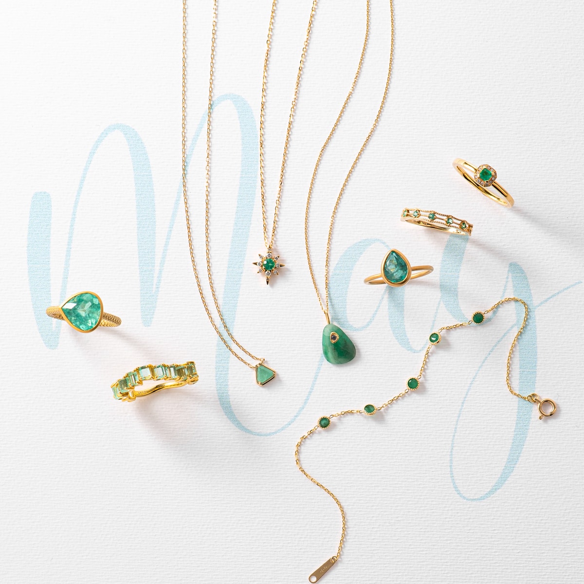 今回は5月の誕生石、エメラルドのジュエリーをご紹介します。美しいグリーンがコーデに彩りと洗練感を与えてくれます。(※5月の誕生石には石の追加はありません)