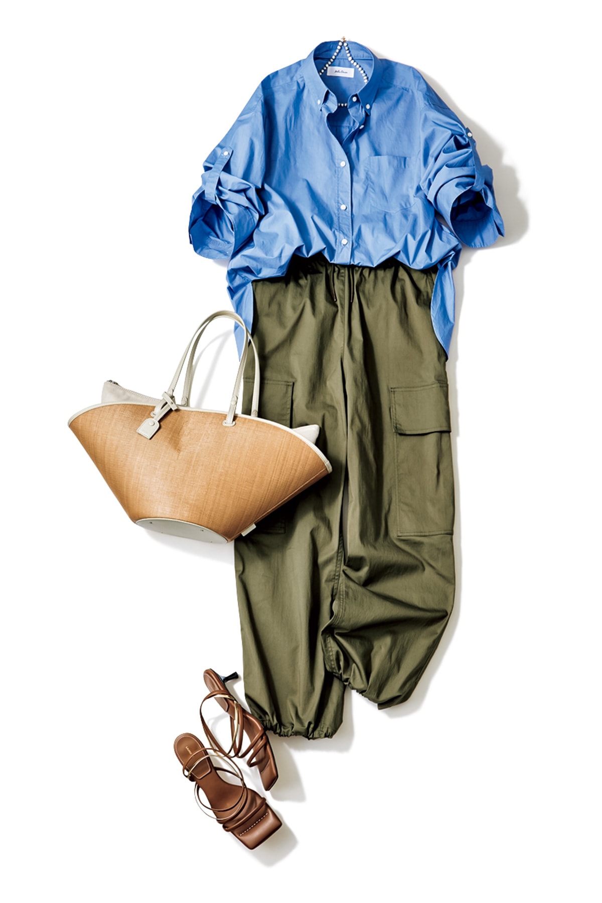 ベーシックにトレンドをほどよく落とし込んだアイテムが揃うMila Owenからは、袖のアレンジが可能な八分袖シャツをピックアップ。一枚で、インとして、羽織として、と着回し力も抜群。¥8,910(Mila Owen/Mila Owen ルミネ新宿2店) -