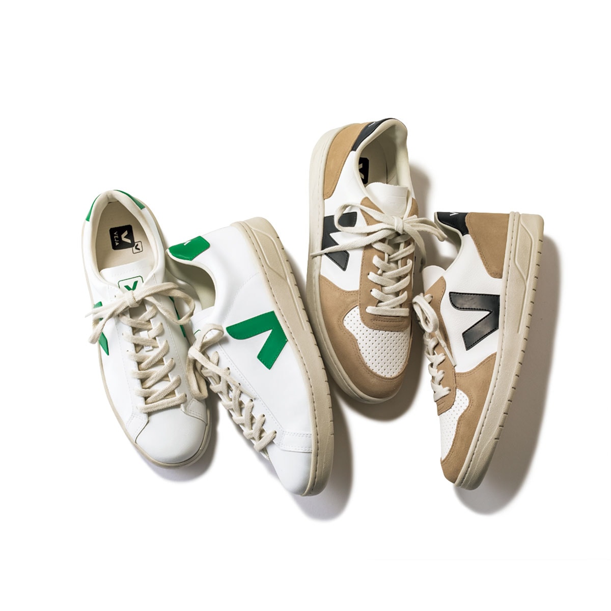 〈左〉Vマークにはヴィーガンスエードを使用。「URCA」¥26,400〈右〉「V-10」¥28,600(ともにヴェジャ)
