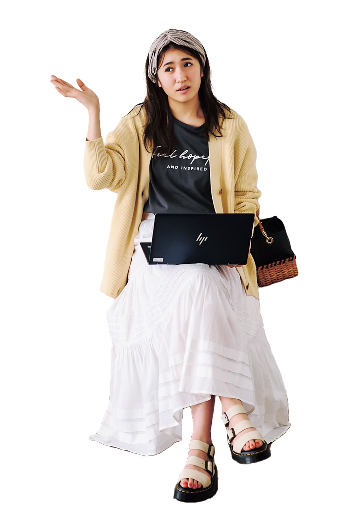 土曜日なのに社内チャットがよく鳴るなと思ったら私のミスへの問い合わせ&連絡の嵐。「こういう連携プレイとか連帯責任とかがダルいから早くFIREしようとしてるんですよ!」ヘアバンド¥3,300(ビーミング by ビームス/ビーミング ライフストア by ビームス ららぽーとTOKYO-BAY店)バッグ¥24,200(ヴィオラドーロ/ピーチ)サンダル¥25,300(ドクターマーチン/ドクターマーチン・エアウエア ジャパン)