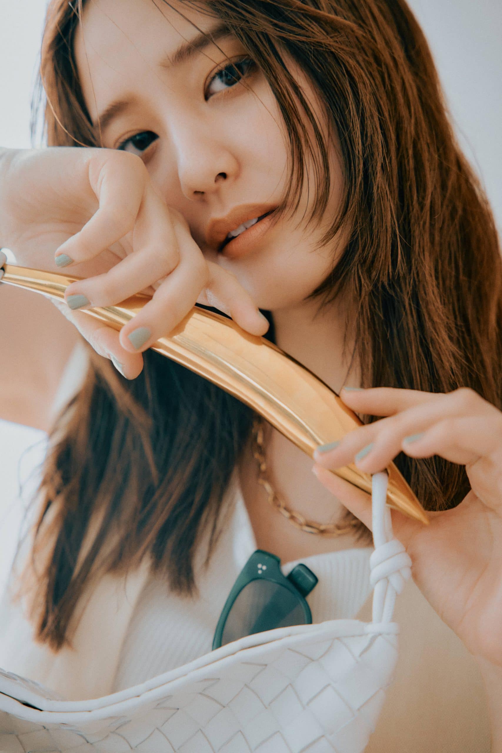 モダンアートのような存在感で装いにエッジィなアクセントをプラスしてくれる、イントレチャートのバッグ。白×ゴールドの組み合わせが上品で涼しげな印象へと導きます。ショルダーにかけても、小脇に抱えてもーーさまざまな持ち方ができるのも魅力のひとつ。