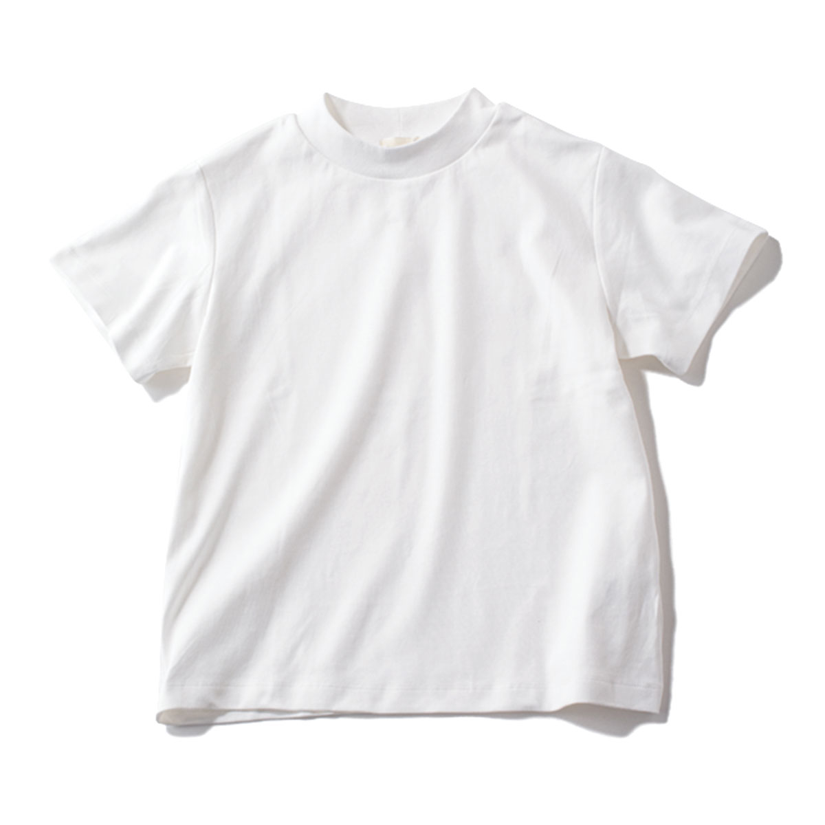 首の詰まった衿ぐりとハリのあるスムース素材がきちんと見え。すっきりした形でスタイルアップ効果も抜群です。