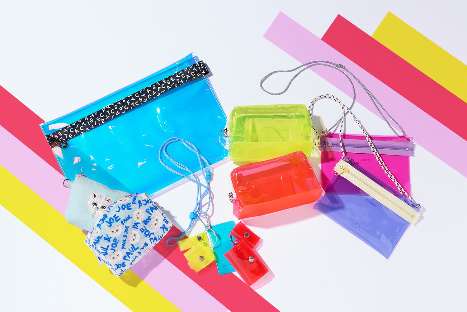 夏らしい、PVC素材。今年は、透明ではなくキャンディのようなポップな色使いのPVCアイテムが流行中。存在感のあるアイテムだから、まずは、バッグの中のポーチやミニバッグから挑戦するのが正解です。