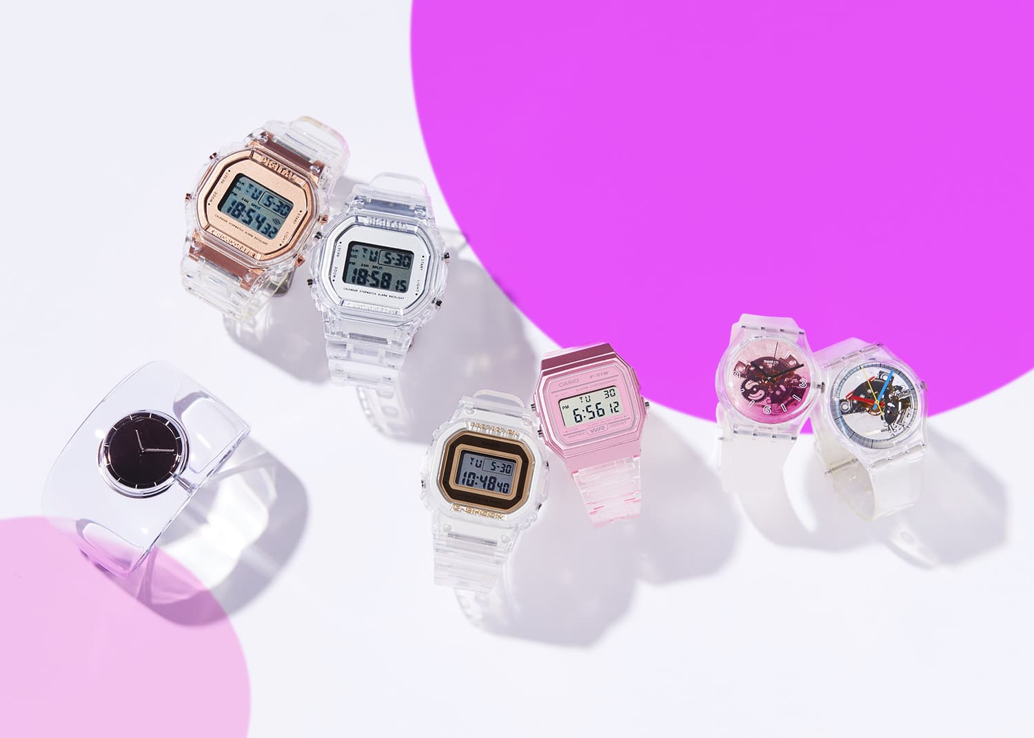 今回は、カラフルな夏のスタイリングにマッチするスケルトンウォッチを紹介。多機能搭載のスポーティなものから、新素材を使ったモードなものまで、今の気分にマッチした時計が見つかるラインナップです。