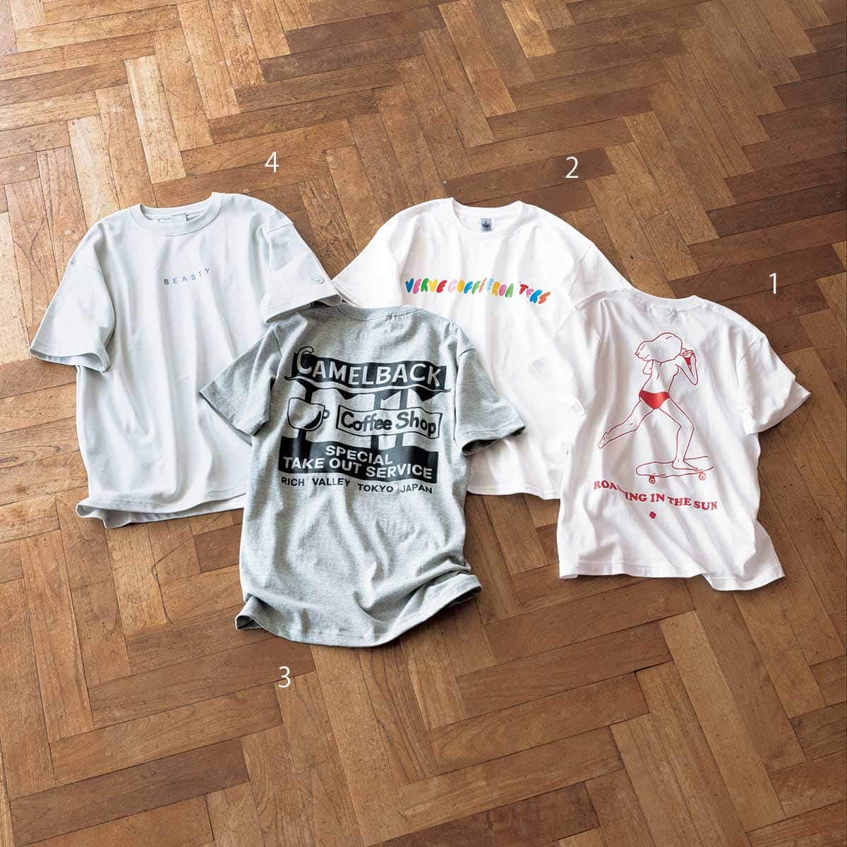 グラフィックを手掛けるのは東京を代表するストリートブランド「F-LAGSTUF-F」村山氏。メンズっぽいプリントを楽しめる一枚。¥5,000