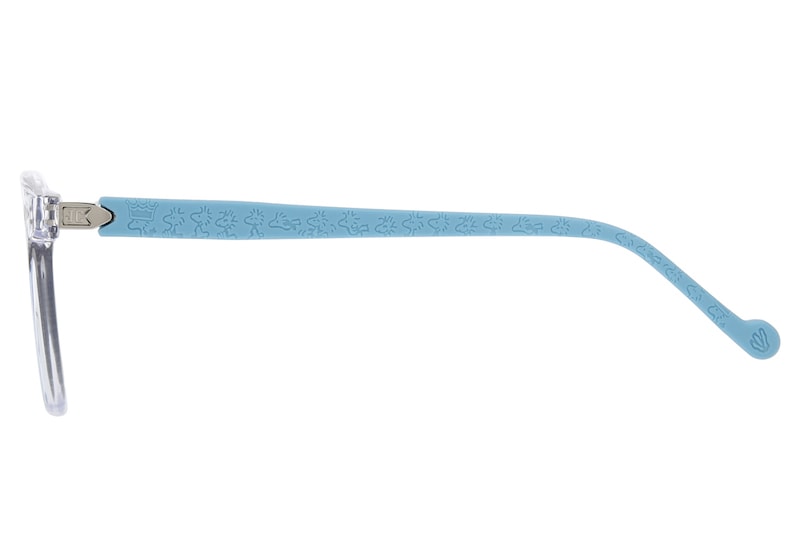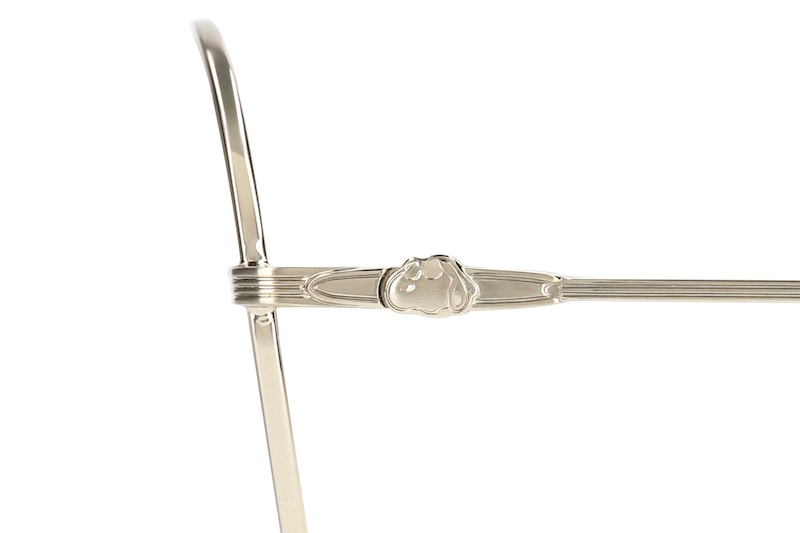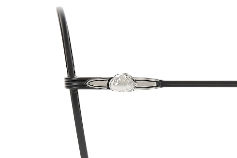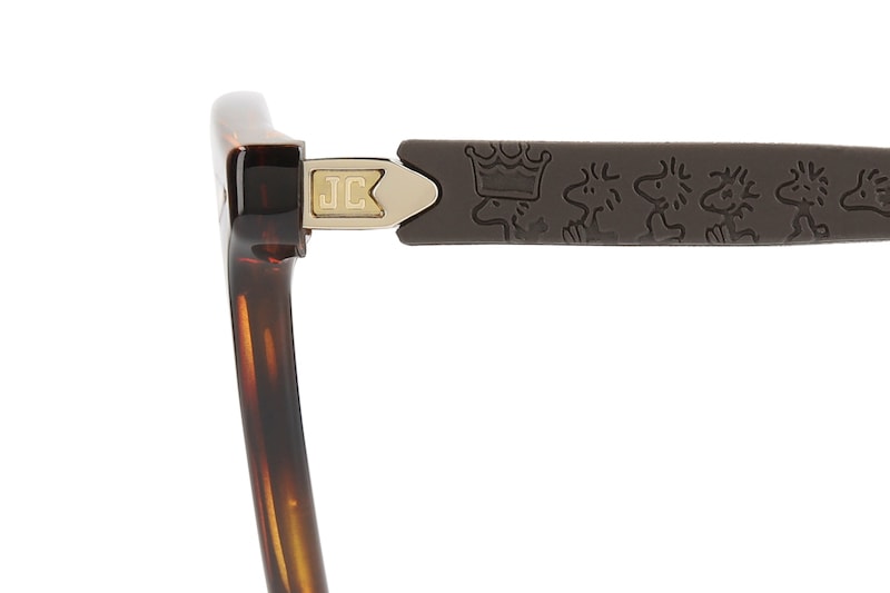 動きも表情も豊かなウッドストックが、テンプル(つる)に総柄でデザインされたウェリントンモデル。ペナントをかたどったメタルパーツもポイントです。