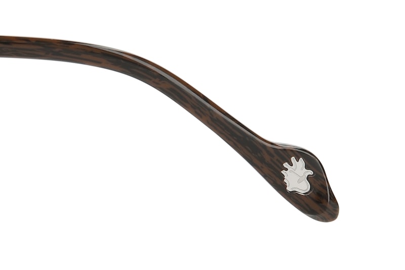 ペナントをかたどったメタルパーツに、カレッジ風ロゴのテンプル(つる)の先にパーツが付いた顔なじみの良いボストンモデル。『JOE COOL』がかけているサングラスをイメージした深いブラックカラーのモデルは、WEB限定での販売です。