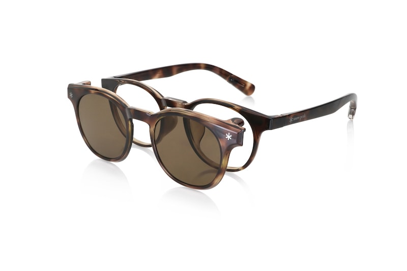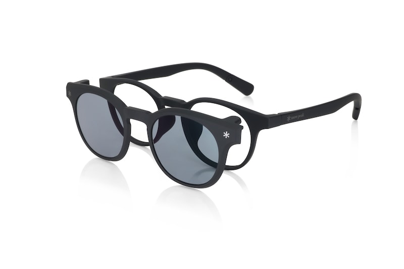 Snow Peakの⼈気アイテムのチタンシリーズからインスパイアされたモデル。シンプルなフォルムとSnow Peakのキャンプギアを彷彿させるカラーリング。プレートを重ねるだけでメガネからサングラスにスイッチする、1本で2WAYのアイテムです。