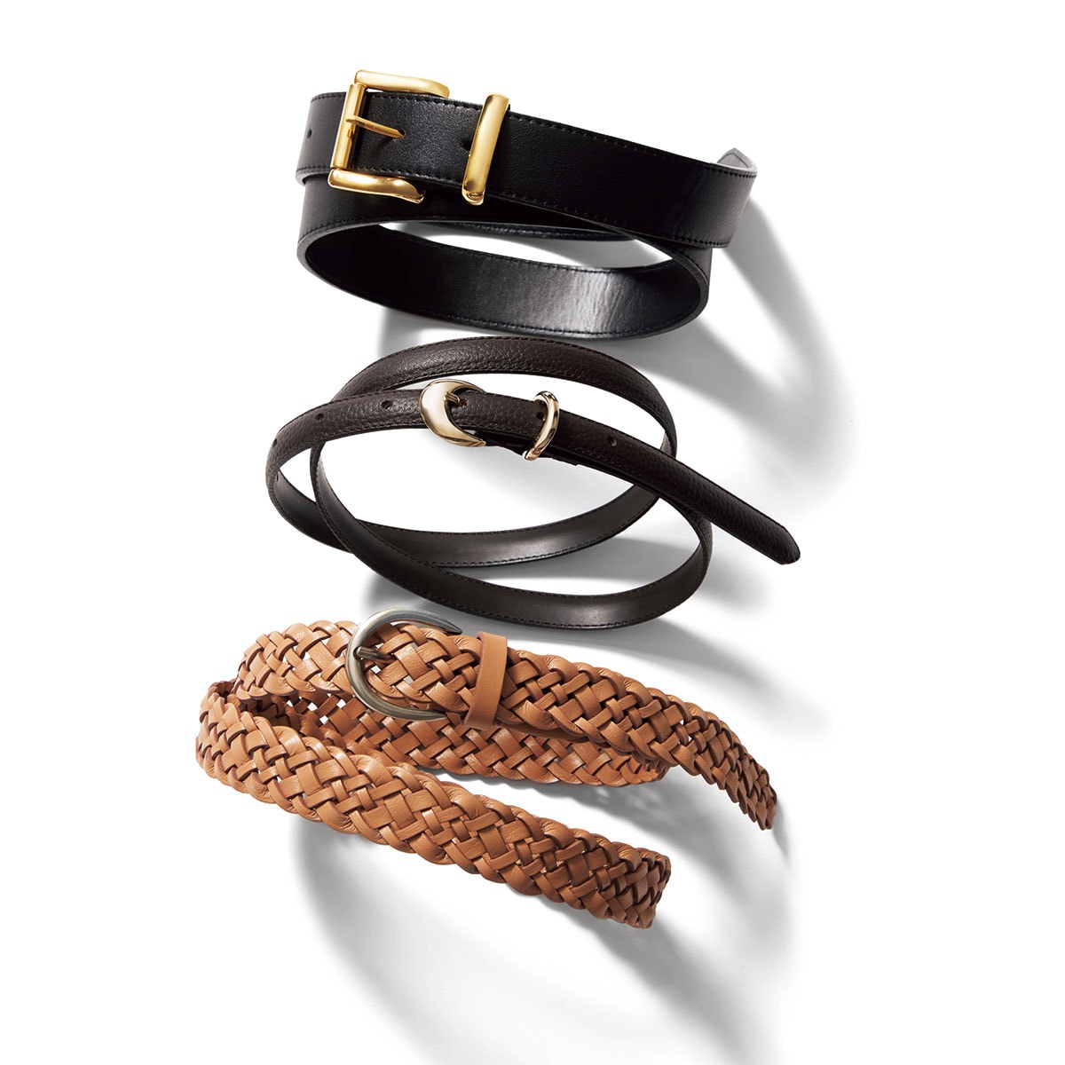 [上から]ベルト¥15,400(アルアバイル)ベルト¥8,800(ガリャルダガランテ/ガリャルダガランテ 青山店)ベルト¥2,990(UNIQLO)