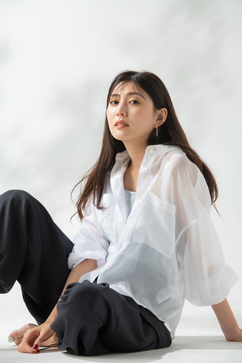 シアーシャツのほどよい透け感は大人の肌見せコーデにぴったり