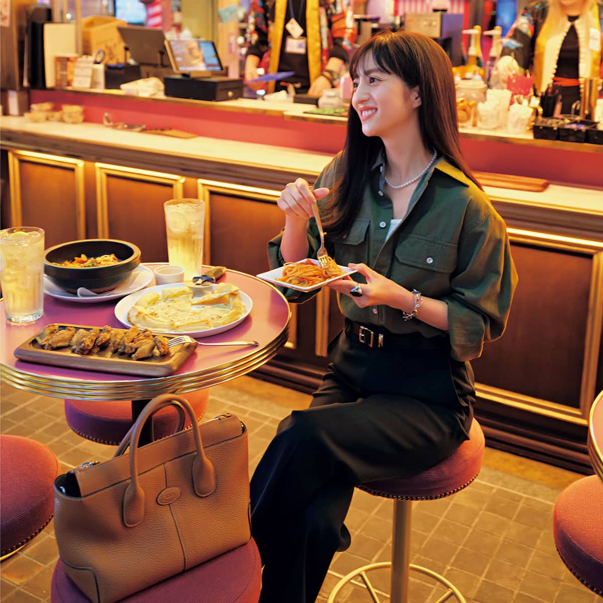 シャツ¥22,000(アッパーハイツ/ゲストリスト)タンクトップ¥9,900(タンクトウキョウ/エイチ ビューティ&ユース)パンツ¥20,900(ザ シンゾーン/シンゾーン ルミネ有楽町店)ベルト¥40,700(カルメイヤー/アパルトモン 青山店)バッグ¥322,300(トッズ/トッズ・ジャパン)ネックレス¥48,400リング¥69,300(ともにマリハ)ブレスレット¥9,350(イン ムード/フォーティーン ショールーム)
