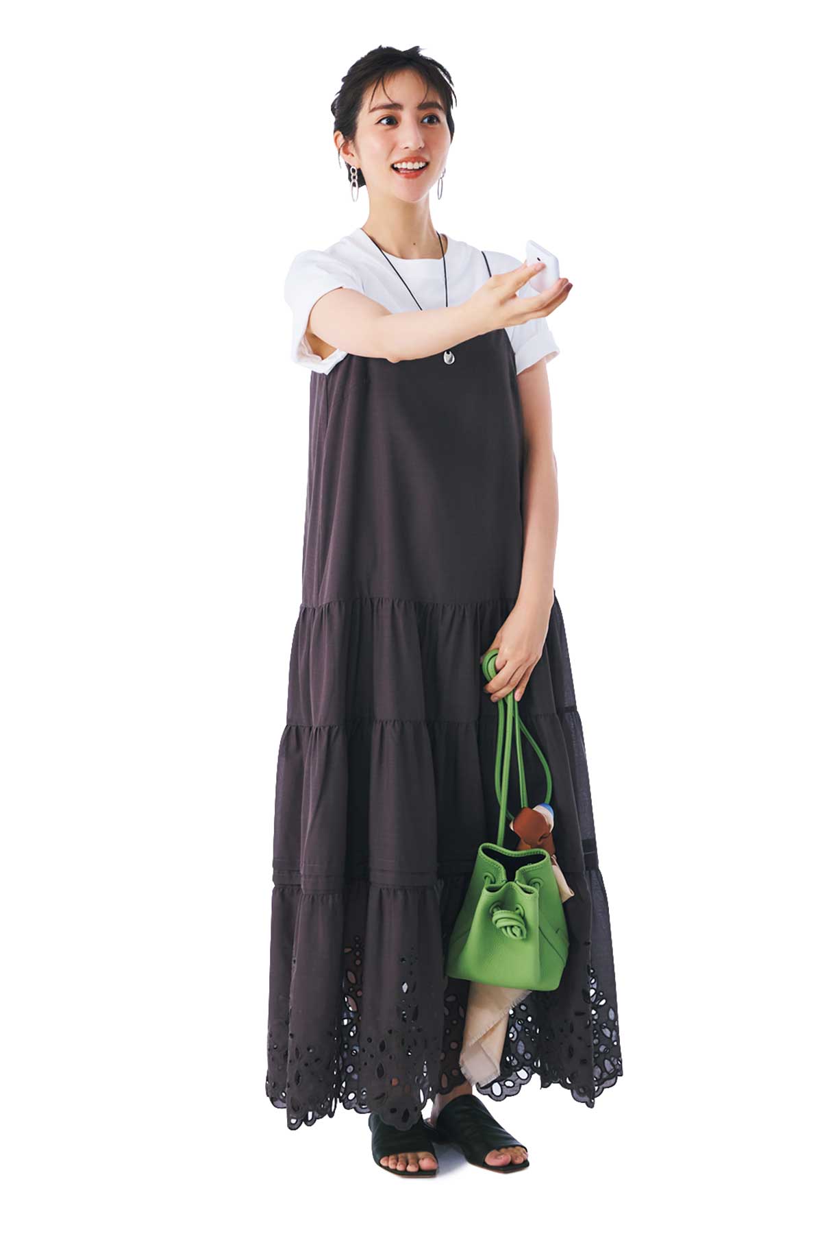 キャミワンピに白Tシャツを合わせた真夏の大人コーデ【着回しDiary】