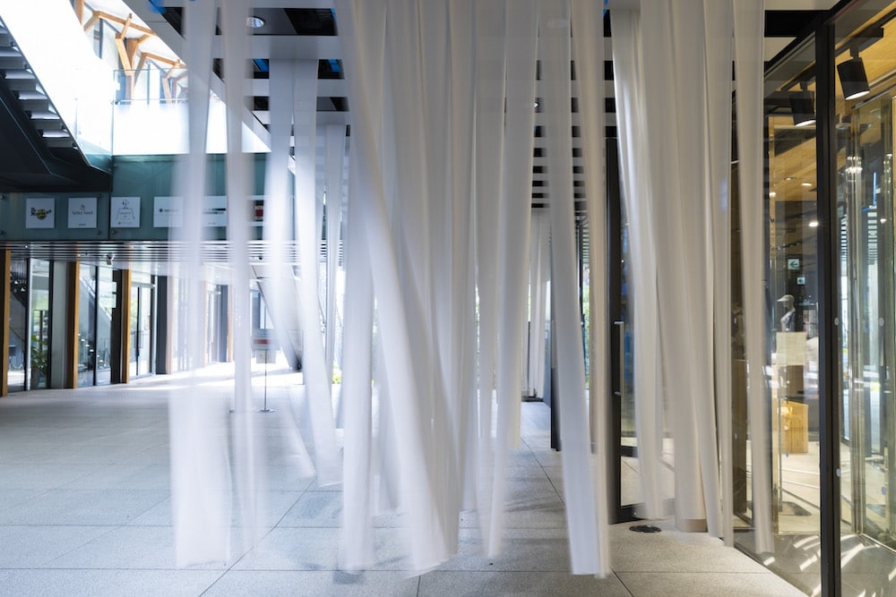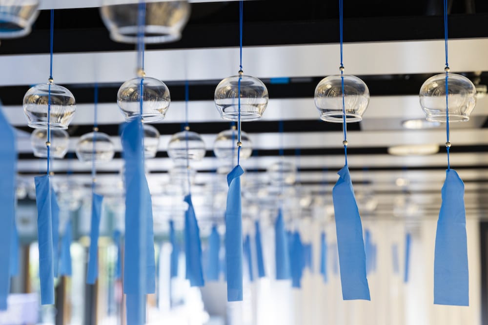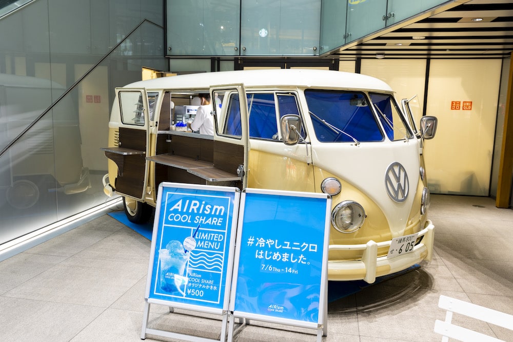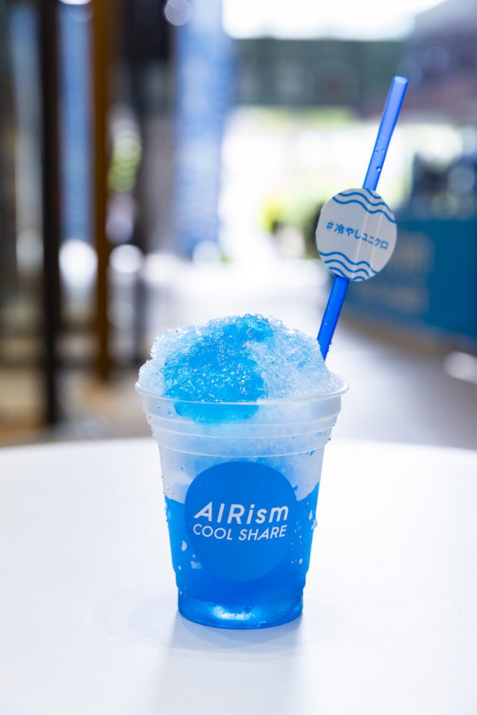 他にもエアリズム生地でできたカーテンや風鈴による演出、エアリズムブルーをイメージしたオリジナルかき氷の販売を実施。イベント開催中は、店頭のユニクロロゴも涼やかなエアリズムブルーになっています。この機会に、是非原宿店で涼を感じてみて!