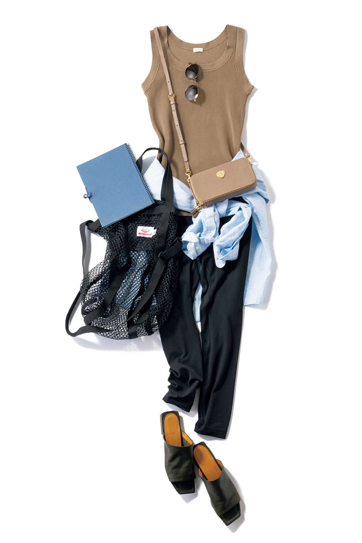 ユニクロのシャツを効果的に腰巻きした大人のレギンスコーデ【着回しDiary】