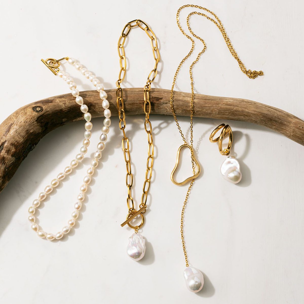 「金属アレルギー対応ジュエリー」として医療用器具に使われる316Lステンレスを使用したサージカルステンレスのジュエリーほか、トレンド感あふれるアイテムが続々登場しています。今回はバロックパールやゴールドカラーの使い方が華やかで印象的なLARICAのジュエリーをご紹介します。