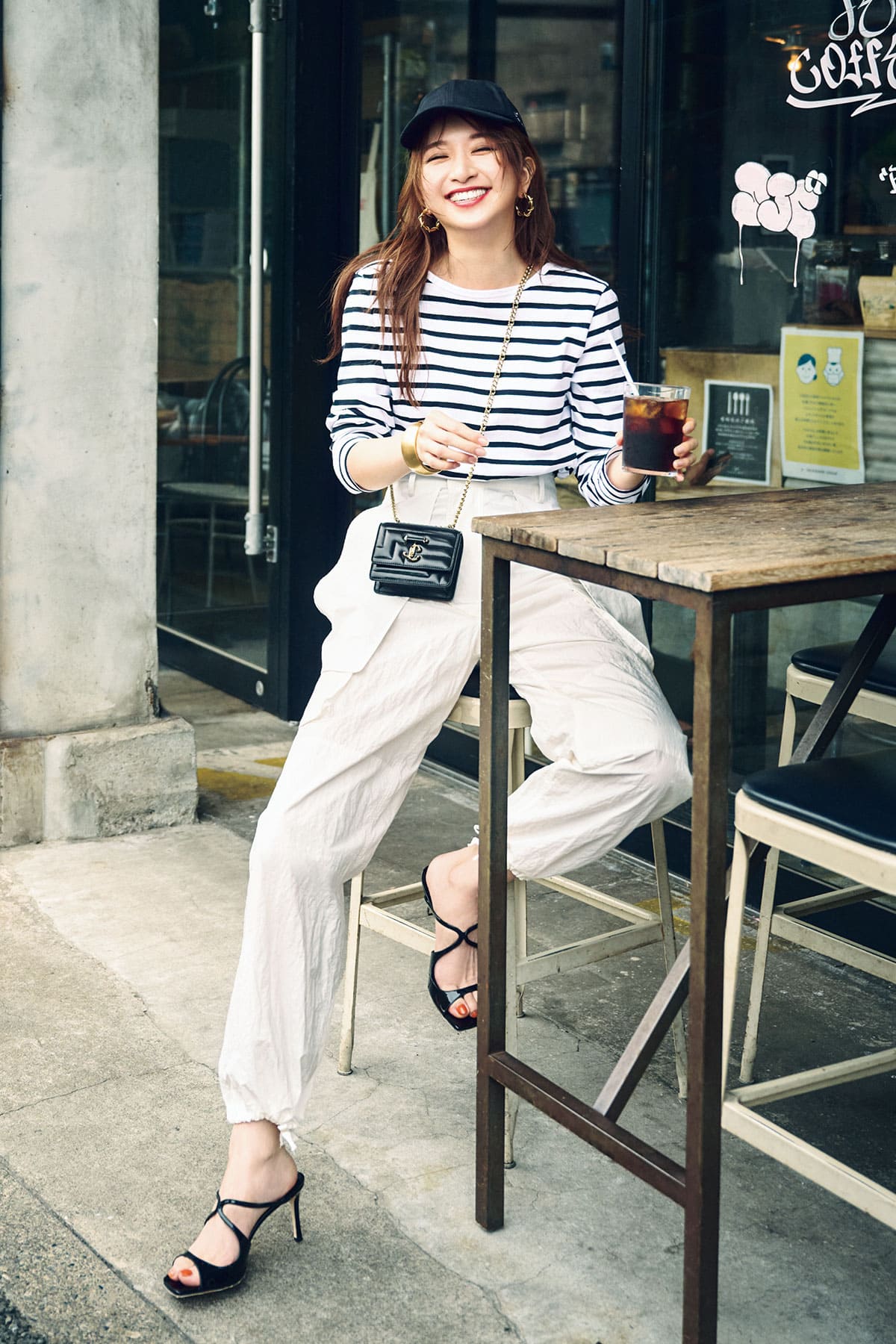 カフェでのひとり時間、ショッピング、ジム…、休日はフットワーク軽く動けて、心地いい服が着たい。動きやすくてシワになりにくい”シャカシャカ”で、トレンドのスポーティも満喫するのもいい!