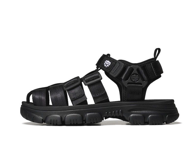 足全体を覆うストラップはつま先からかかとまでをガード。甲のストラップはポリエステルのため水に濡れても乾きます。アウトソールはシャークトゥースグリップ機能で滑りにくい仕様です。