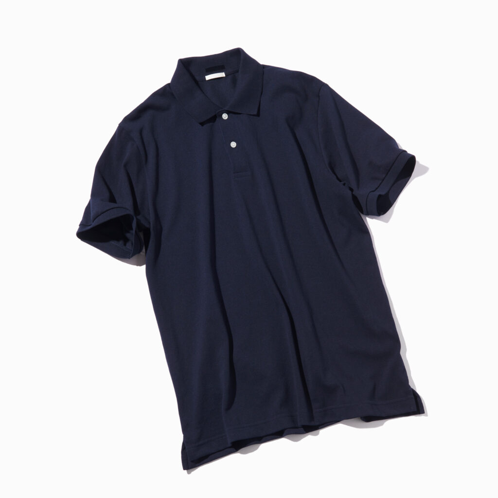 カジュアルな素材ながら、襟付きの正統性で清潔感ときちんと感があるポロシャツ。大人世代が着こなすなら、知的なムードのあるネイビーやグレーがおすすめです。ポロシャツ¥1,490(GU)