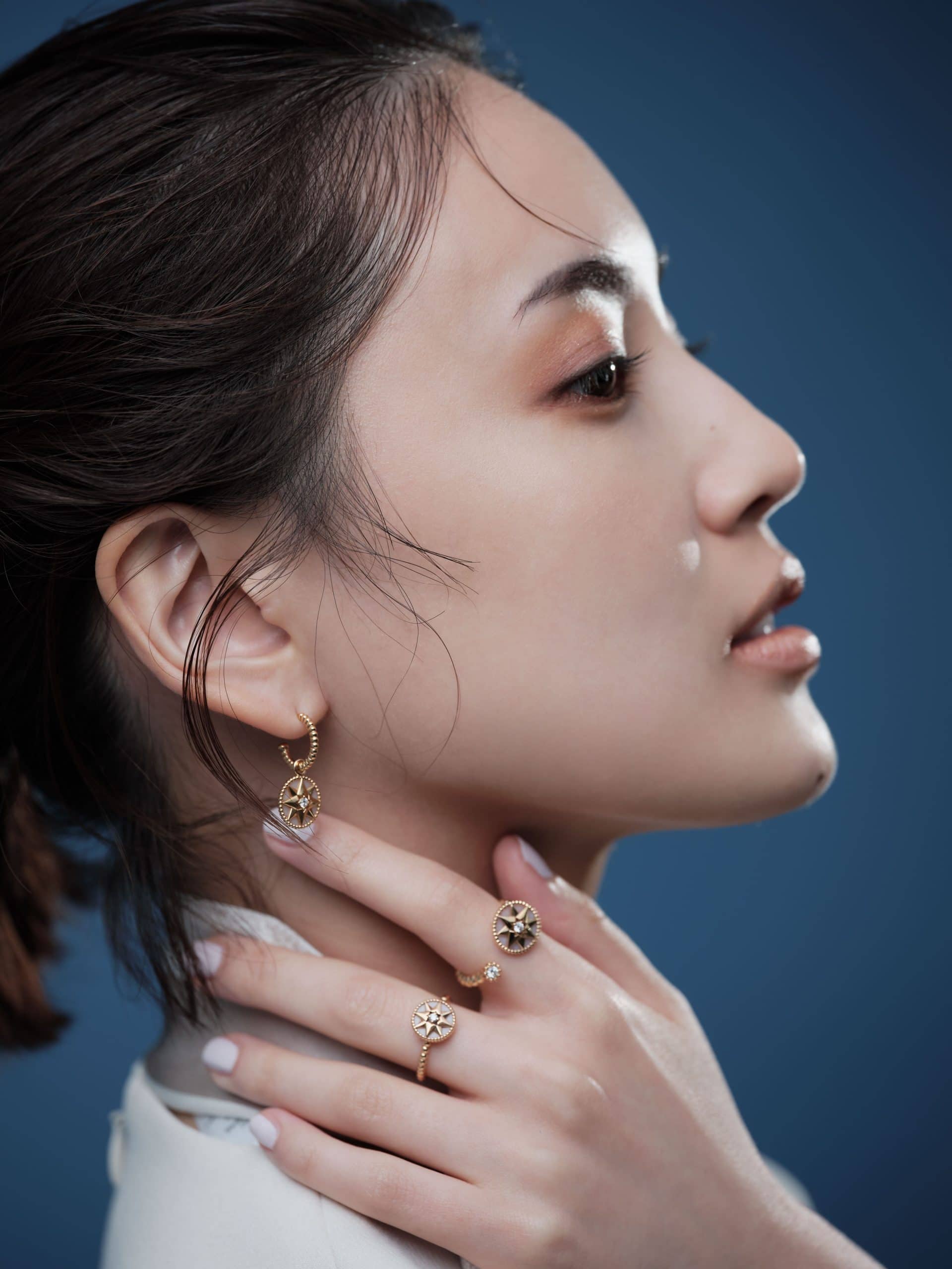 ムッシュ ディオールがラッキーアイテムとして愛し続けたスターモチーフと風配図、薔薇を再解釈したメダイヨンジュエリー。繊細な縁取りと中央にセットされたダイヤモンドの煌めきが、メゾンのシンボルをエレガントに引き立てるデザインで、シンプルコーデを格上げしてくれます。