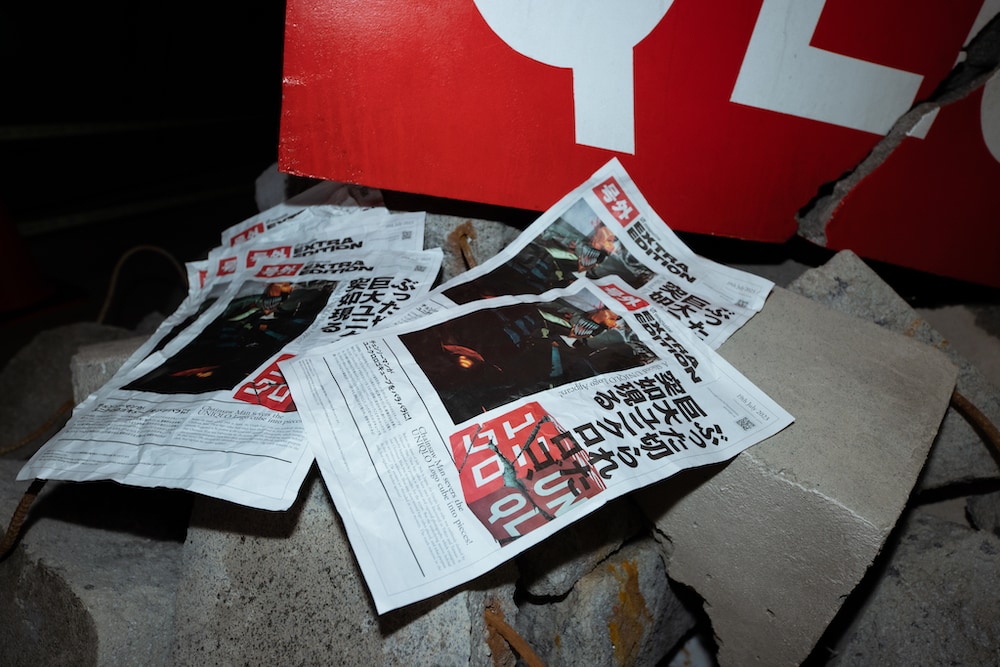 チェンソーマンが滅茶苦茶にぶった切ったユニクロのロゴキューブが現れたという内容が書かれた号外が突然配布。しかし、どこに置かれたのか?一体なんのために行われたのか?詳細は謎のまま…。これから続報が発表されるとのこと。真相はいかに!?
