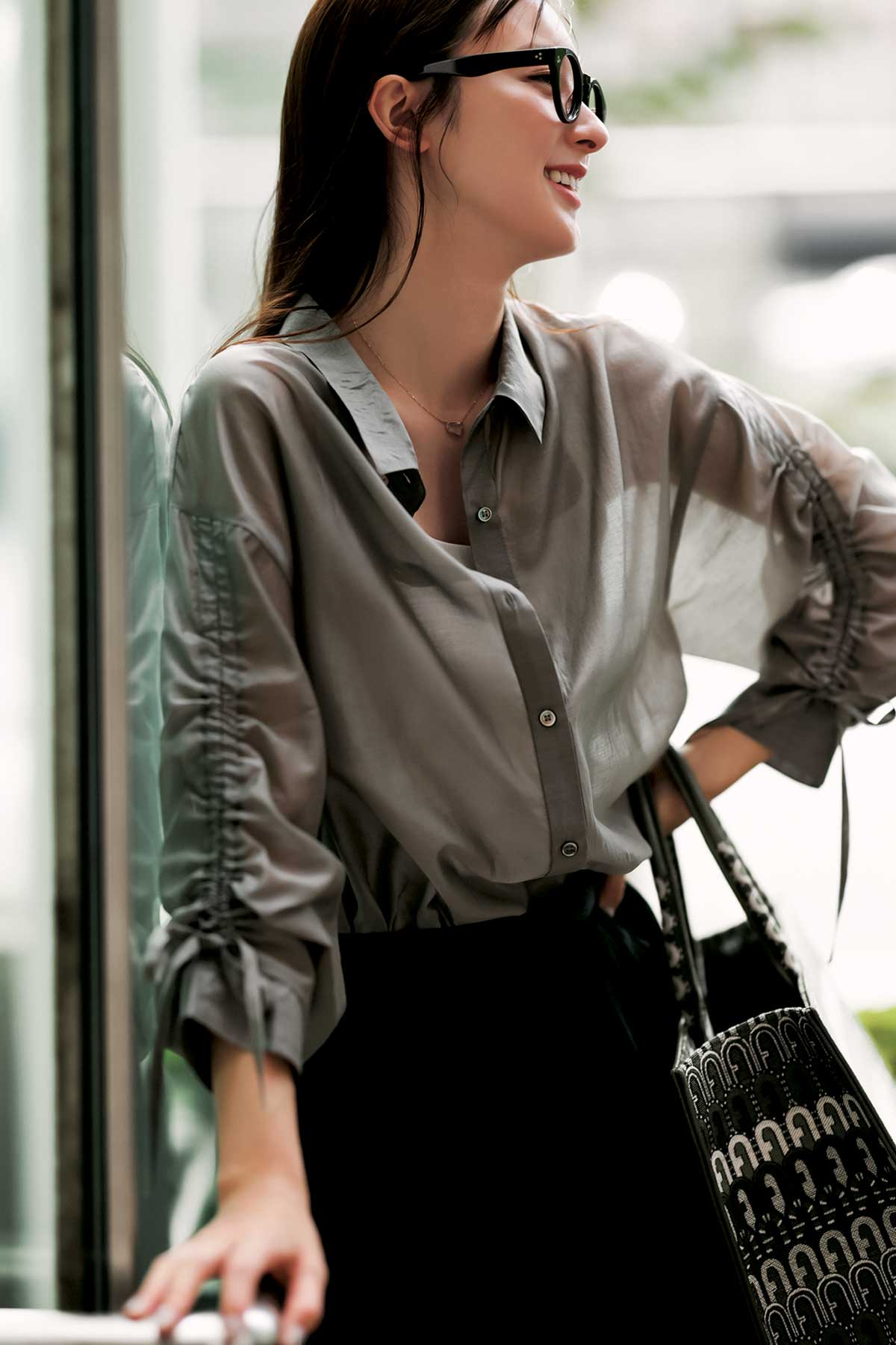 上品な透け感が女らしいシアーシャツは華奢見え効果も抜群