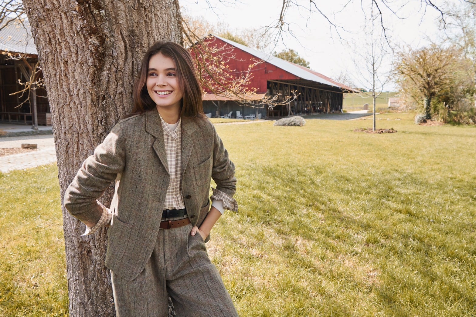 今期、イネスは自身のスタイルを確立させたルーツに立ち返りました。彼女のワードローブに欠かせないのは20世紀初頭のフランスで日常的に使われていたワークウェア。コットンやウールなどの天然素材を使い毎日着られるタフさも兼ね備えている服を大切にしています。南フランスのニーム地方が発祥と言われているデニムは欠かせない素材のうちのひとつ。ジーンズはもちろんのこと、ワンピースやジャケット、シャツなどで表現されています。ニットアイテムは、オレンジやレッドなど、自然を感じさせるカラーパレットになっています。
