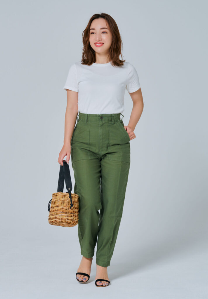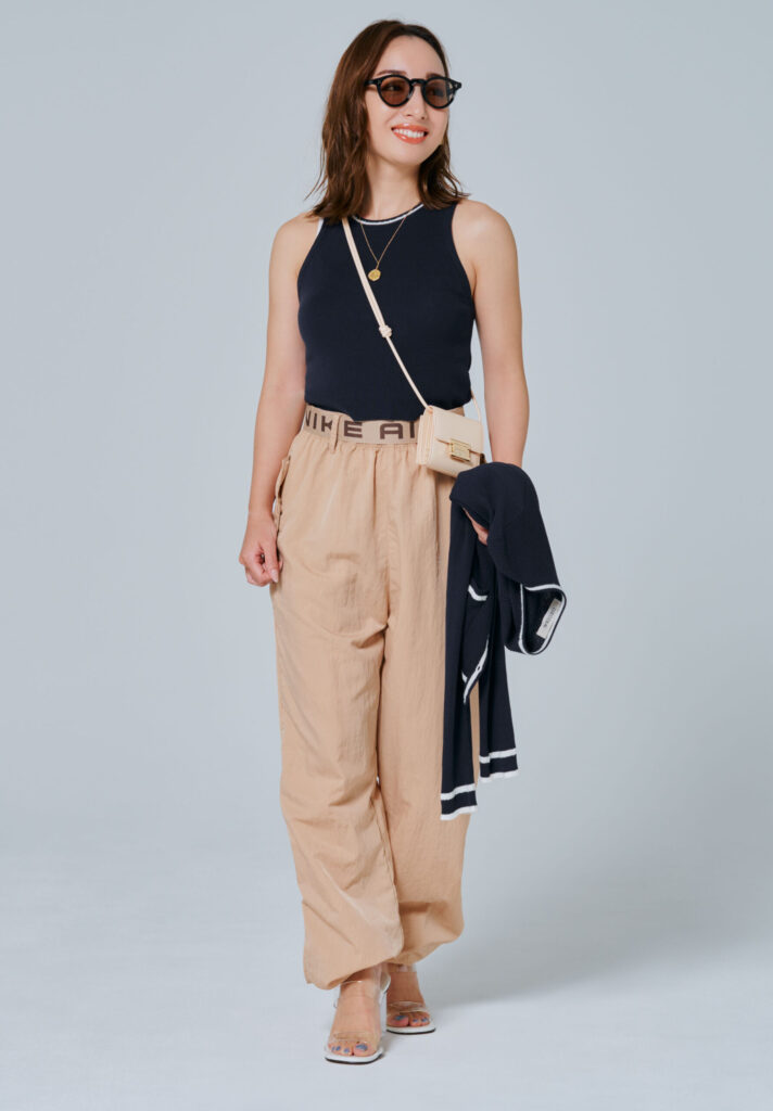 「普段は、全体をバランスよく見せたいからピタッとしたトップスにハイウエストのボトムスを合わせることがほとんど。コーデがワンパターン化してしまうのと、シンプルなベーシック服ばかり選びがちなので、この夏はもっとバリエーションを増やしたいです」(香利奈さん)