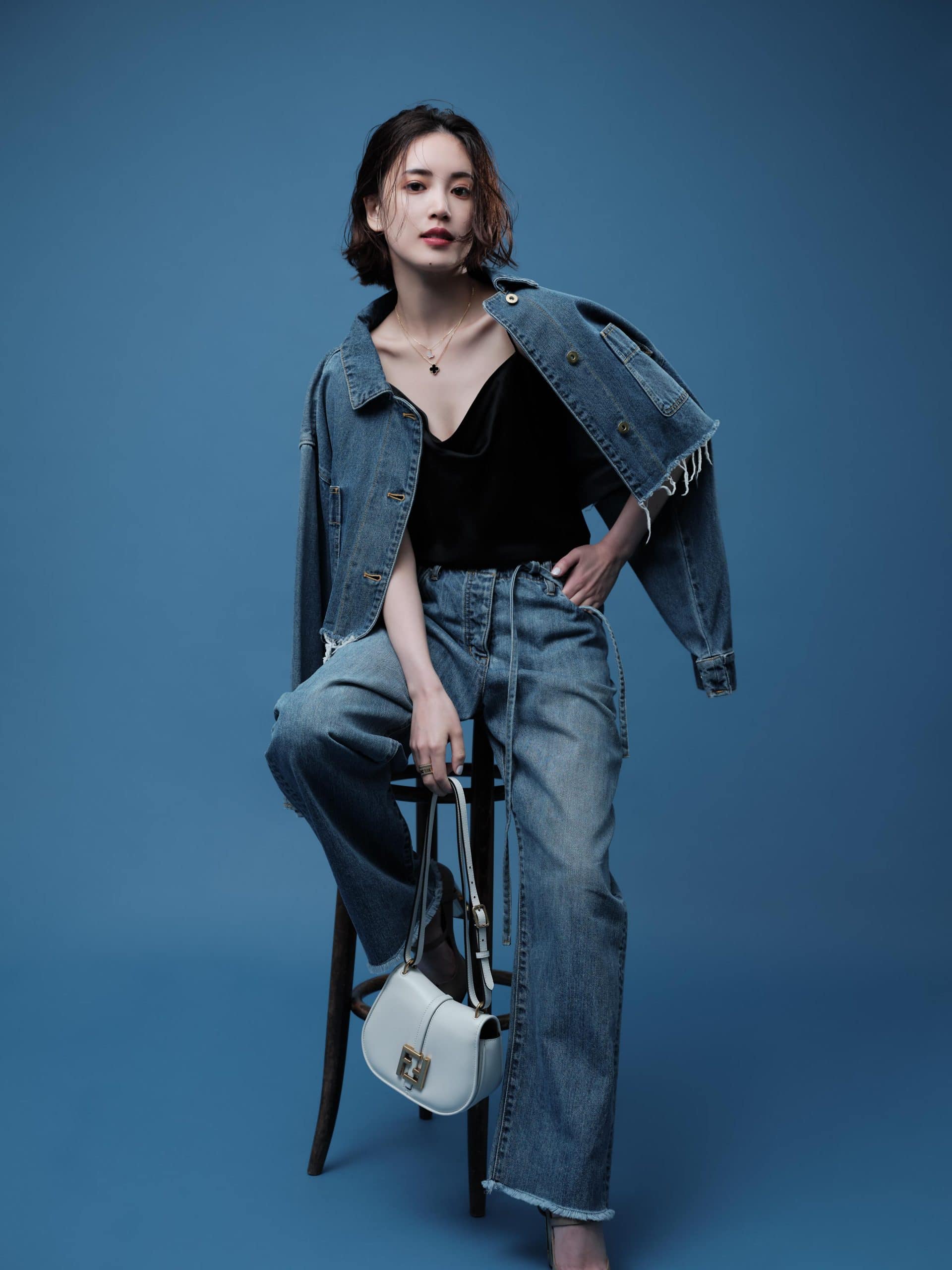 カジュアルがドレスコードのオケージョンやポップアップイベント、レセプションパーティなど、ファッション感度の高い人たちが集まる場で選びたい、デニムONデニム。着こなしがラフなぶん、憧れブランド=ヴァン クリーフ&アーペルのアイコンジュエリーや「FF」ロゴが効いたエレガントなバッグでリュクスなエッセンスを。ジャケットのインナーはキャミソールにして程よく肌感を出すのも、デニムコーデを女っぽく仕上げる秘訣。