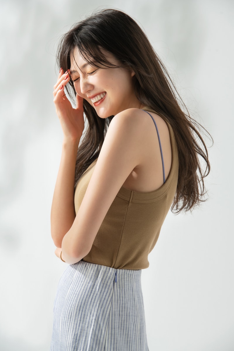 デコルテを隠しつつも肩や背中を見せることでヘルシーな肌見せが叶うアメスリ。肩を大胆に見せるデザインなので、ブラのショルダーが見えやすいのがお悩みです。どうせ見えてしまうなら、あえて“見えてもオシャレ”なブラを選ぶのが正解! 丸みのあるスパゲティストラップなら、ブラジャー感がなく見えてもヘルシー! トップスとカラーonカラーでコーディネートすれば、さらにオシャレ度がUPします!