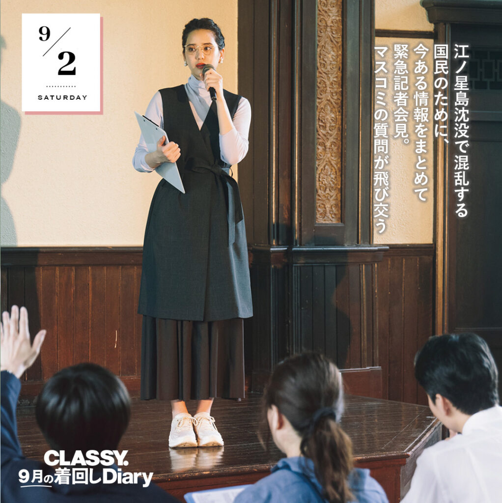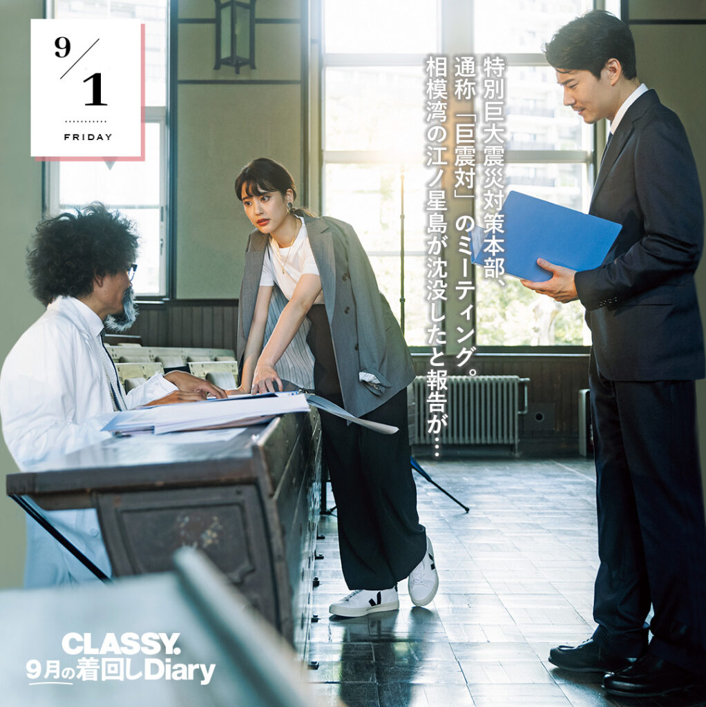 【SNSでバズり中!】日本沈没まであと1カ月!?「スニーカーで奔走する防災女子の9月の着回しDiary」のストーリーは?|CLASSY.2023年10月号