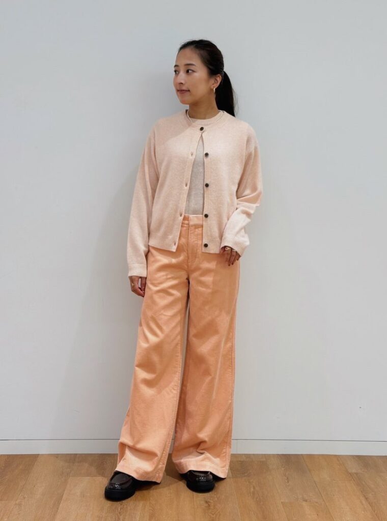 コーデュロイワイドパンツ セットアップ可能¥4,990[Mサイズ着用]カシミヤクルーネックショートカーディガン(長袖)¥10,900[Mサイズ着用]カシミヤクルーネックショートセーター(ノースリーブ)¥6,990[Mサイズ着用]コンフィールタッチローファー¥4,990[Mサイズ着用](すべてユニクロ:シー/ユニクロ)