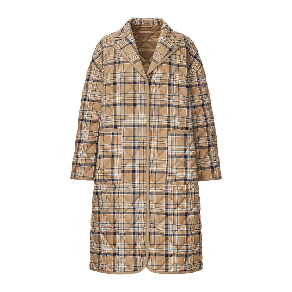 ゆったりとしたサイズ感とエアリーな中綿が着心地よく、驚くほど軽いのに暖かい1着。メンズライクなチェック柄は、あえてミニスカートなど女っぽいアイテムに合わせるのが可愛い。内側のドロストでウエスト部分を絞ることができるので、シルエットの変化も楽しめます。