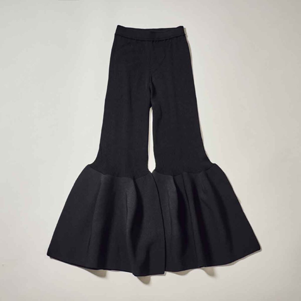 トップスやワンピースが人気のCFCLですが、今回はカッコよく着たいと思いパンツをチョイスしました。立体的な裾の広がりはショートブーツと相性が抜群。今年の冬はモノトーンコーデに合わせたいです。