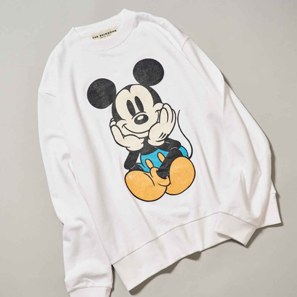 今年はディズニー創立100周年ということで、ミッキーマウスのアイテムが豊富。こちらは珍しい、座っているミッキー♡カジュアルなアイテムなので、ジャケットに合わせて大人ならではのコーデで楽しみたいです。