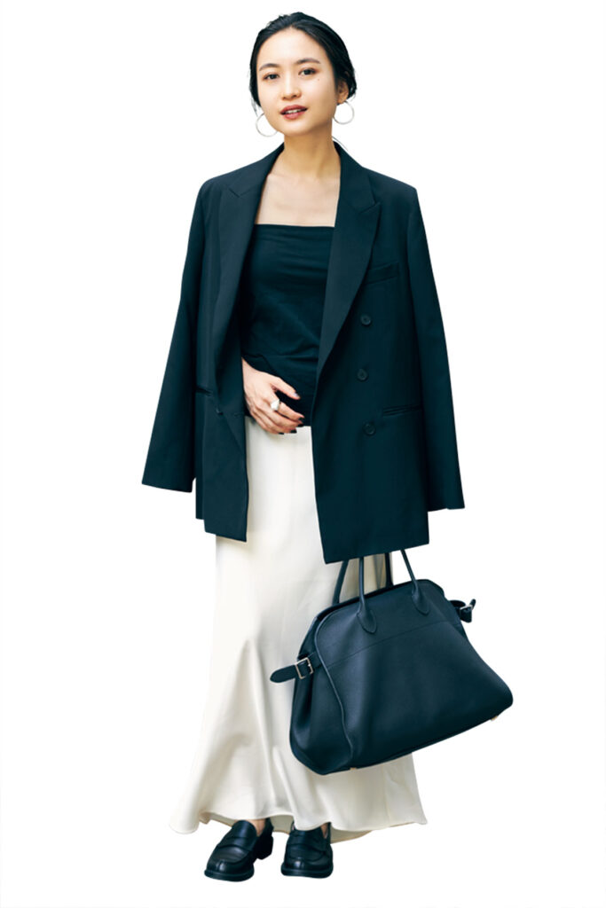 何げない装いも格上げしてくれる上質な黒ローファーに一目惚れ。装飾がなくて使い勝手がいいうえに、歩きやすいのも◎。