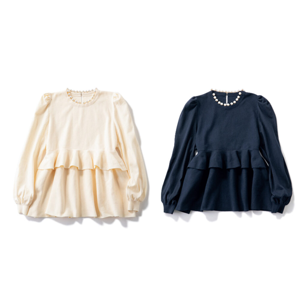 【THREE SQUARE×CLASSY.】パールペプラムニット
