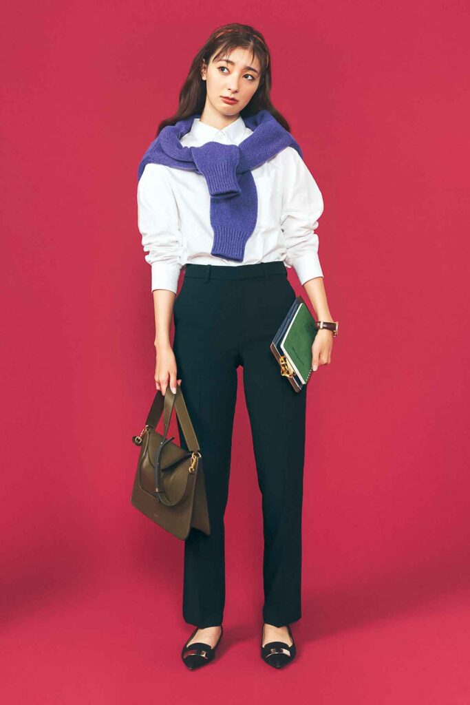 パンツ スタッフ私物 シャツ¥16,500〈MACPHEE〉バッグ¥137,500〈WANDLER〉(ともにTOMORROWLAND)カーディガン¥44,000(スローン/ザ ショップ スローン 新静岡セノバ店)シューズ¥115,500(セルジオ ロッシ/セルジオ ロッシ カスタマーサービス)カチューシャ¥28,600(アレクサンドル ドゥ パリ/アレクサンドル ドゥ パリ GINZA SIX店)時計¥22,990(クルース/HIROBルミネ新宿店)