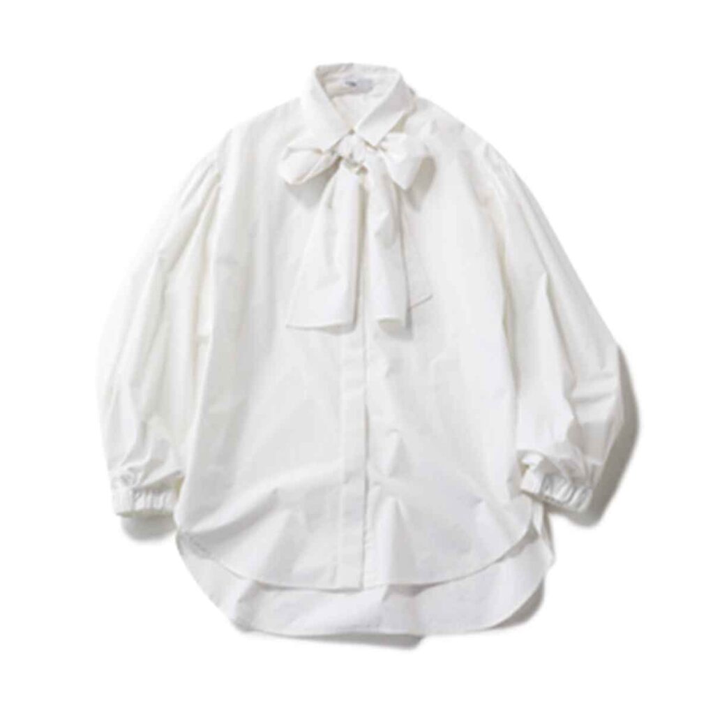 ボウタイを外せば、シンプルな白シャツへと変身。¥25,300(ダブルスタンダードクロージング/フィルム)