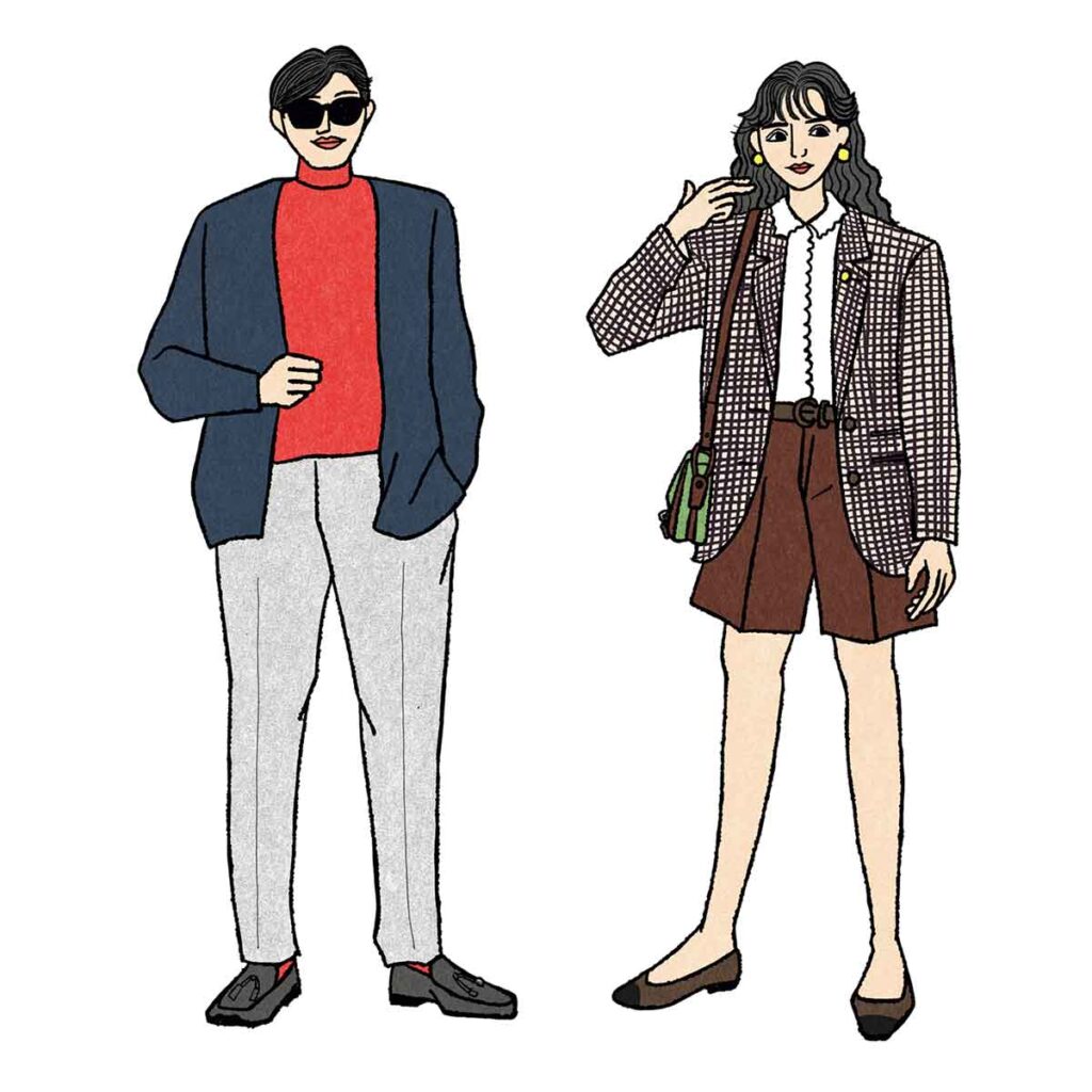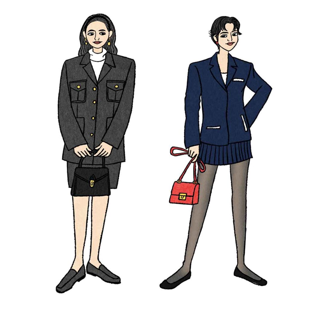 1990年代以降、トラッドも自由度が高まり、現在は厳格なルールもありませんが、今でも多くの女性が定番的なアイテムを身に着け、年代を問わず同じような格好をしています。トラディショナルというベースがあるからこそ、年齢関係なく着られて今風の崩しも楽しめるのでしょうね。