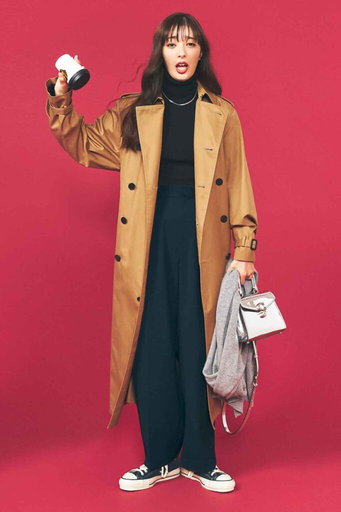 毎年リブニットを買い足す人も、今年は赤を選べば新鮮。ニット¥2,990(UNIQLO)コート¥96,800(ハイク/ボウルズ)パンツ¥20,900(マイカ アンド ディール/マイカ アンド ディール 恵比寿店)バッグ¥86,900(コーチ/コーチ・カスタマーサービス・ジャパン)ストール¥62,700(アソース メレ/アイネックス)スニーカー¥24,200(コンバース/コンバースインフォメーションセンター)ネックレス¥18,920(エムシー・スタジオ/ZUTTOHOLIC)ブレスレット¥9,900(イン ムード/フォーティーン ショールーム)時計¥17,160(クルース/HIROBルミネ新宿店)